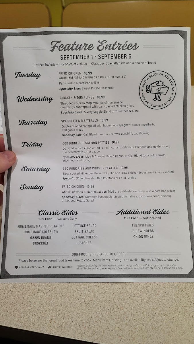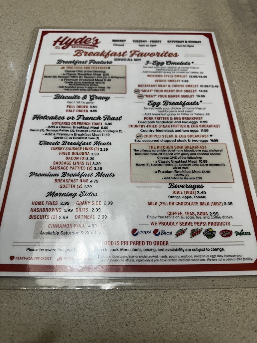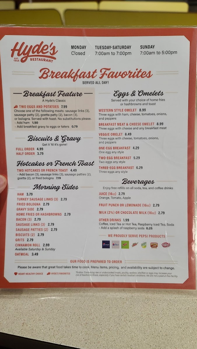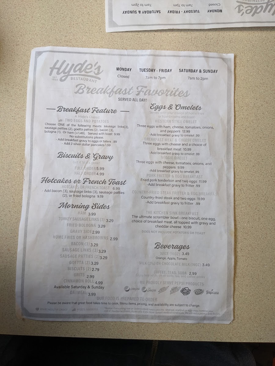 Whether you're craving a comforting plate of biscuits and gravy or a slice of homemade pie, Hyde's Restaurant promises a warm, inviting atmosphere where culinary memories are made.